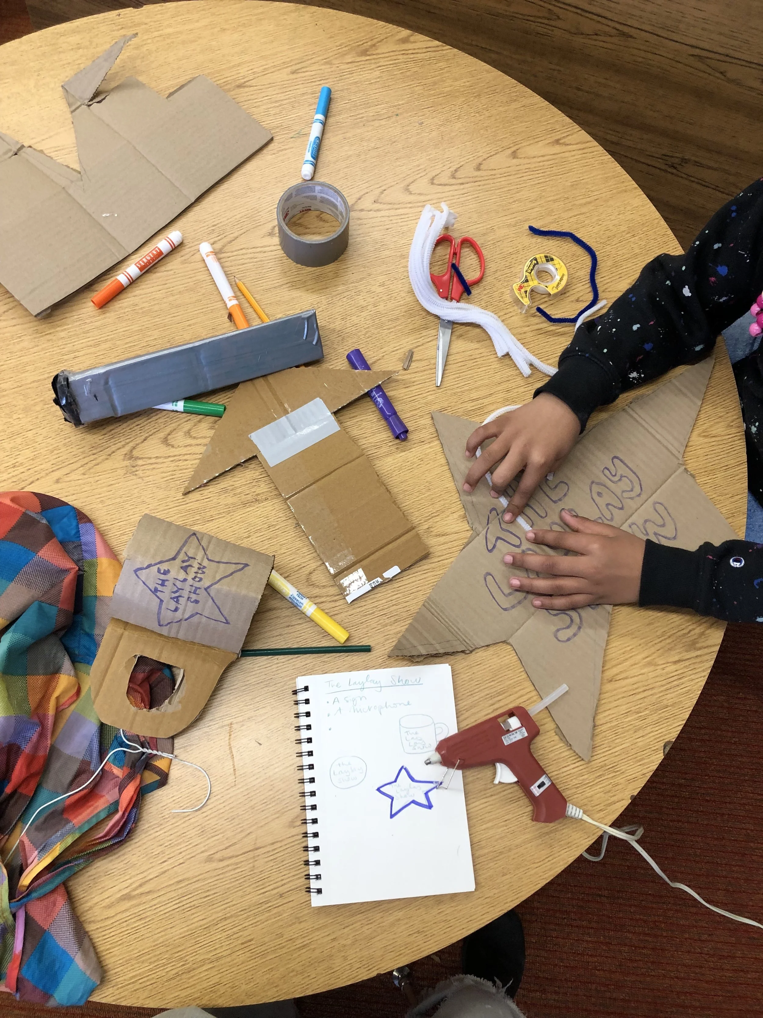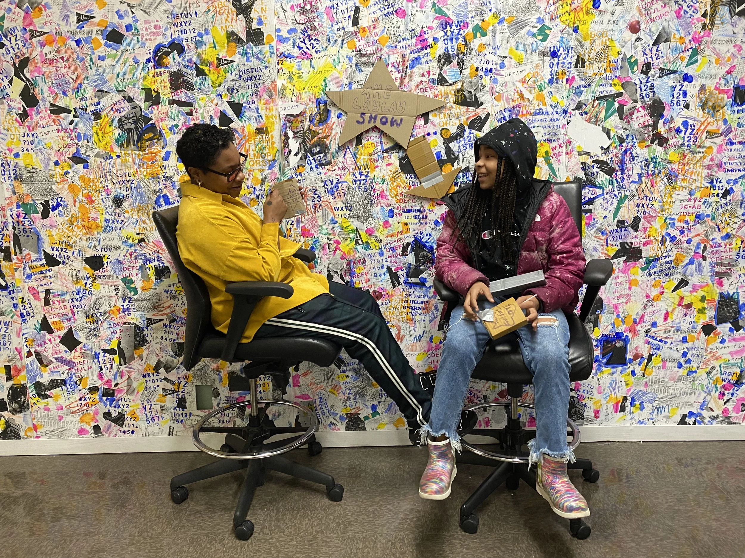 During my mentorship at King School Museum of Contemporary Art (KSMoCA), I worked with third grader LayLay Crane to film a talk show where she interviewed her favorite icons of Dr. Martin Luther King Jr. Elementary School. Together we made props and merchandise for the show. LayLay's fellow classmates contributed hand-drawn commercial title pages to splice the interview segments. Guests included LayLay's favorite teachers, friends, and Berry the school tortoise.